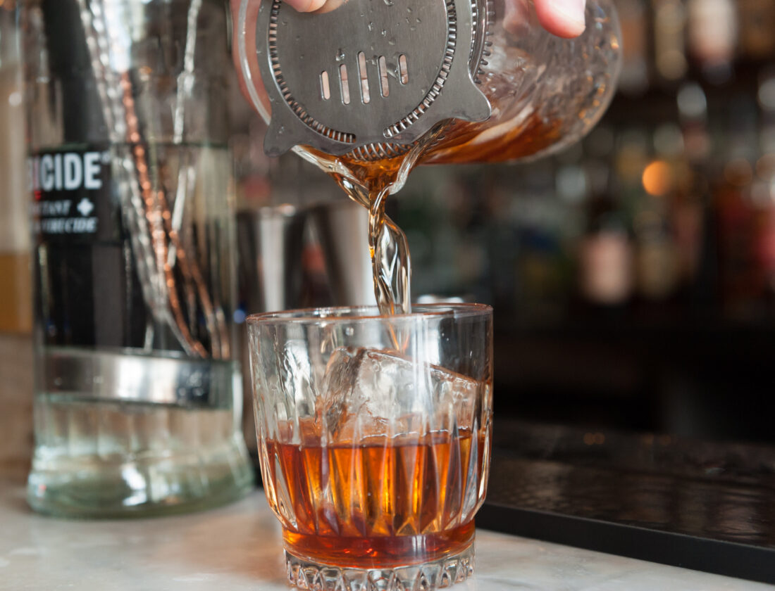 Dilution isn’t always bad, but it, too, has a sweet spot. “Over one large cube is the way to enjoy a single spirit in its purest form if you want to mellow out its sharper notes,” says Lando Sprinkle of the Red Ribbon Society speakeasy in Asheville. A bourbon over a large cube changes slowly over time, as the growing water content gradually unlocks different flavors. By the end of your glass, Sprinkle says, “you’ve had a whole experience.”