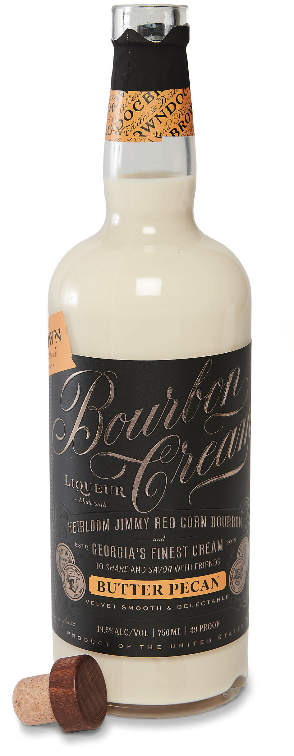 “If you ever ask God for patience, he’ll probably tell you to get into the bourbon business,” says Amy Brown, a cofounder, with her son Daniel Williams and friend Paige Dockweiler, of Doc Brown Farm & Distillers. The trio teamed up in 2018 to run what is now 120 acres of farmland about forty miles south of Atlanta where they grow their own heirloom corn and rye. They send the grain to Atlanta for distilling. While waiting for their straight bourbon to age to perfection (their first barrels launched this fall), they began a line of four delicious bourbon creams— think Baileys, but with a Southern accent. They extract deep, natural flavors from peppermint leaves, coffee, and cacao, which enhance their two-year-old whiskey made with Jimmy Red corn.