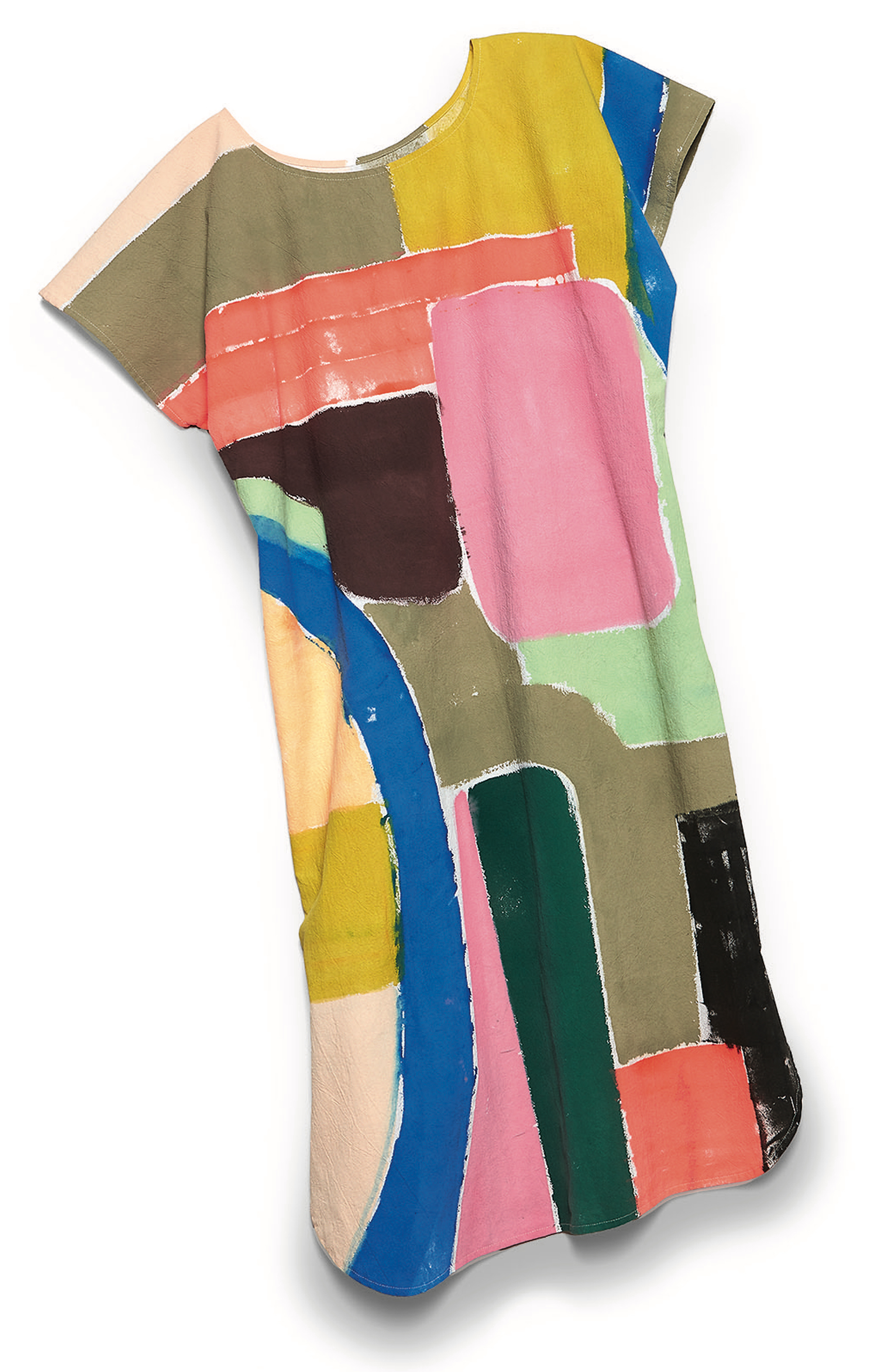 Textile surface design—marbling, dying, airbrushing, screen printing, stamping, painting—brings an element of fine art to STATE the Label’s collection of handsewn swimsuits, pants, blouses, accessories, and dresses, including the brand’s beloved House Dress. “The cut is simple and timeless and classic,” says STATE’s designer and co-owner, Adrienne Antonson, of the silhouette. “It’s flattering on all sizes. And it’s a really great canvas for what we do best: hand painting.” Like many of STATE’s one-of-a-kind looks, the cotton House Dress embraces versatility; the wearer can dress it up for dinner, cinch a jacket around the waist for a tighter fit, or toss it on over a bathing suit. For the all-female design team, sustainability means just as much as creativity, adaptability, and style, so they emphasize natural fibers as well as recycling and reuse throughout the production process. “Our cutting department saves every little shred,” Antonson says. “We keep inventing new ways to use the scraps.”
